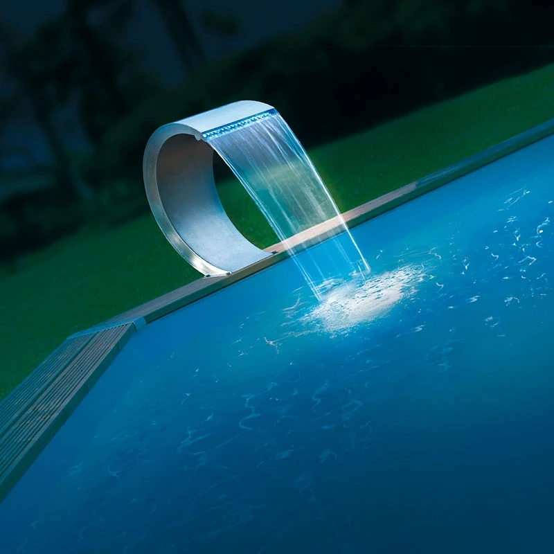 Fabriquée entièrement en matériel Inox résistant au chlore et au sel (type 316 L), son design spécial et sa qualité de fabrication assure une uniformité dans l’épaisseur de la lame d’eau alimentée par le circuit de refoulement de la filtration de la piscine.