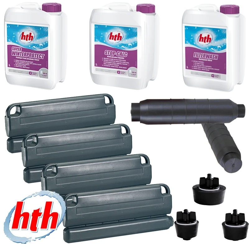 Durant l’hiver, le gel peut déformer les parois de la piscine, détériorer le revêtement et endommager les équipements de manière irréversible. Le pack hivernage Luxe HTH comprend les éléments nécessaires et indispensables dans le cadre d’un hivernage passif. Il est recommandé quelque soit la structure de la piscine.