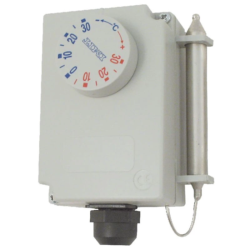 Le thermostat hors gel est compatible avec toutes les installations existantes. La sonde hors gel mesure la température de l’eau et, quand celle-ci est trop basse, déclenche la marche forcée de la pompe de filtration afin d’éviter la formation de glace. Le thermostat électromagnétique permet d’ajuster le seuil de température limite avant la mise en marche de la filtration.